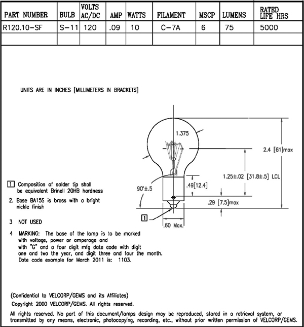 VELCORP GEMS 1293 Energy Cove Ct. Green Cove Springs, Florida 32043 Office: 904-230-2840 FAX: 904-230-2938 Email: rrlights@velcorpgems.net |